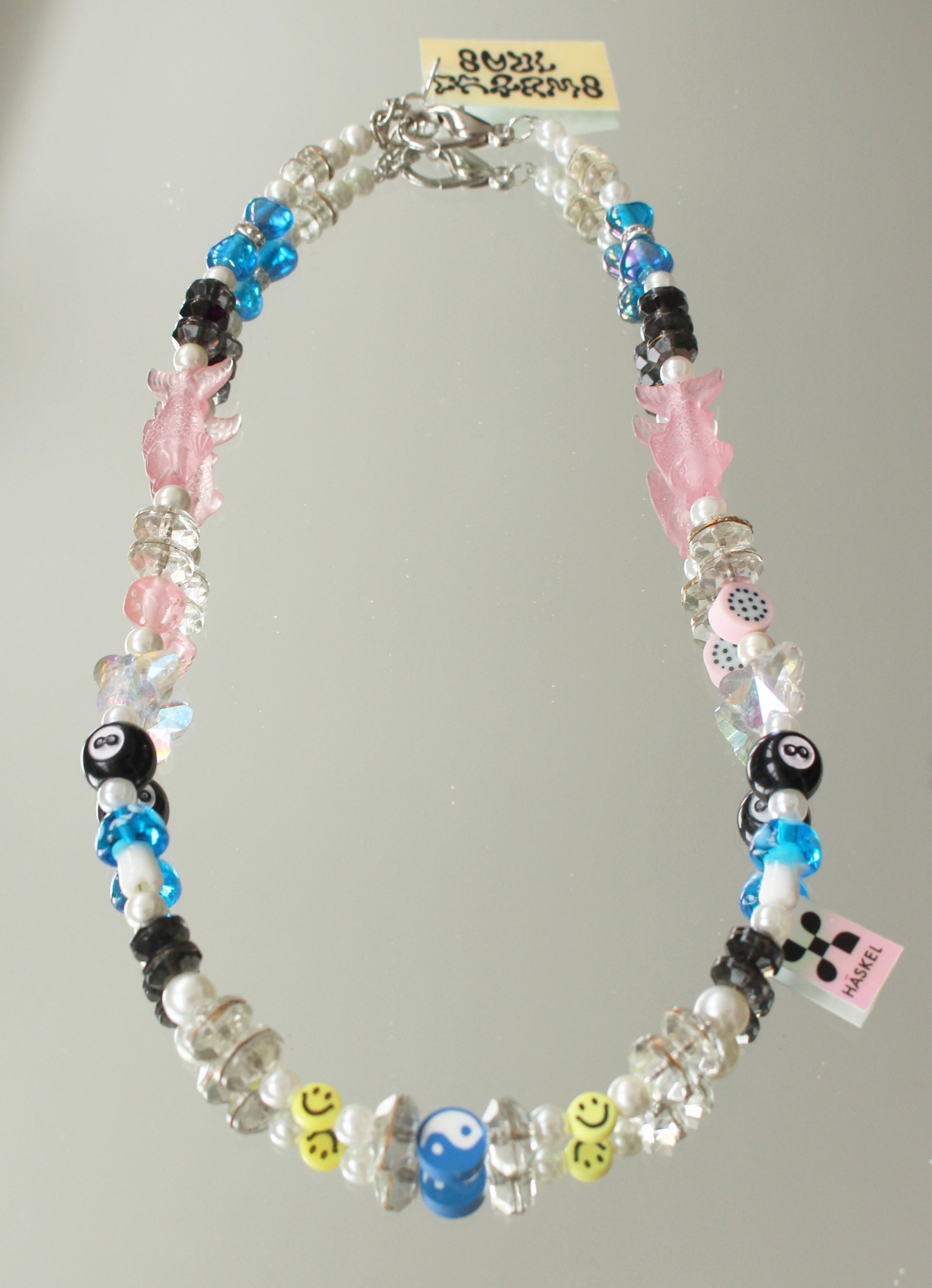 Materials: High-quality vintage glass pearls, galvanised glass butterflies, Swarovski in translucid glass and other lucky beads. Double clasped to be worn at varying lengths as desired from 51 to 54cm.