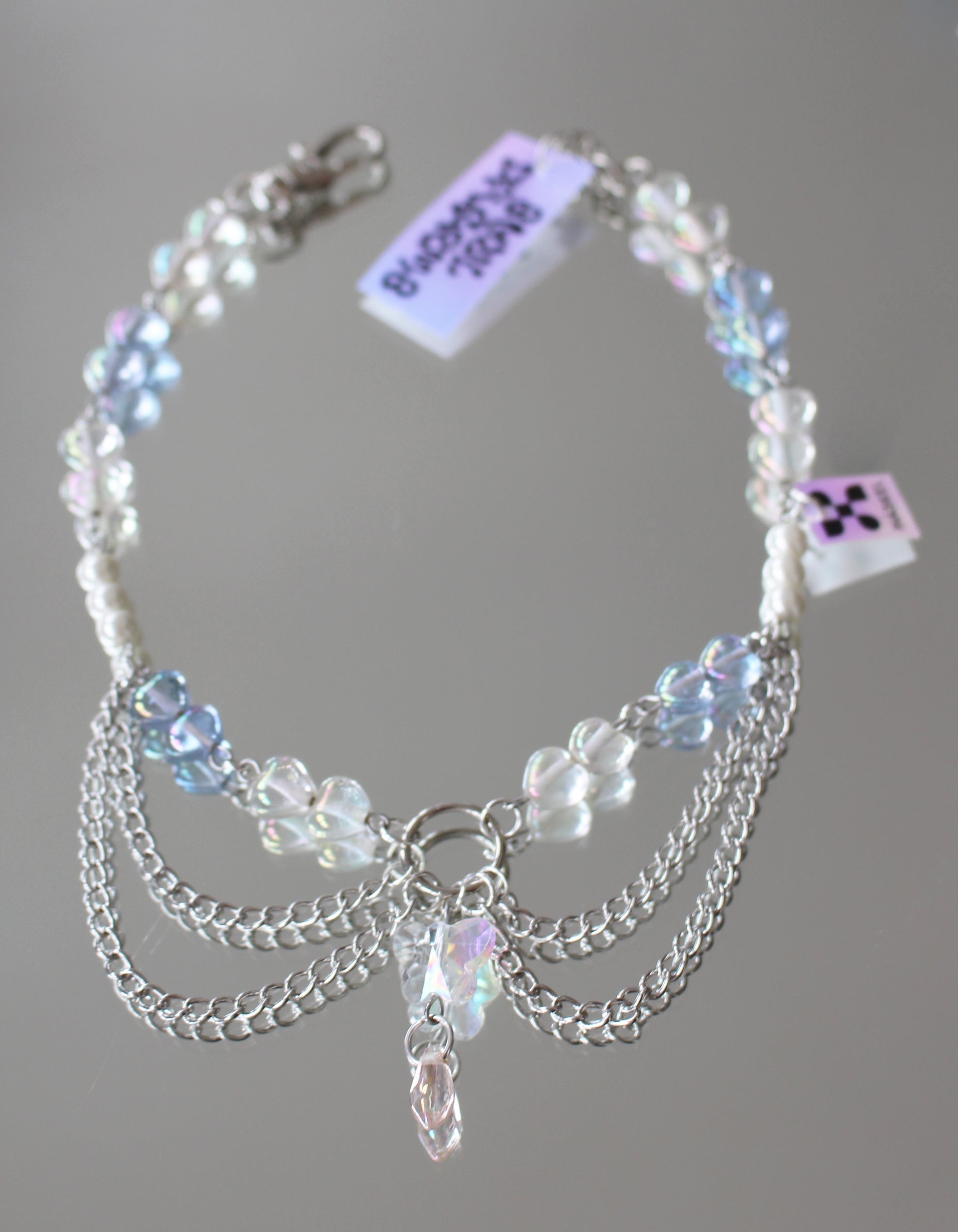 Materials: Handcrafted Swarovski ensembled chain. Murano charms and chain rest. Double clasped to be worn at varying lengths as desired.