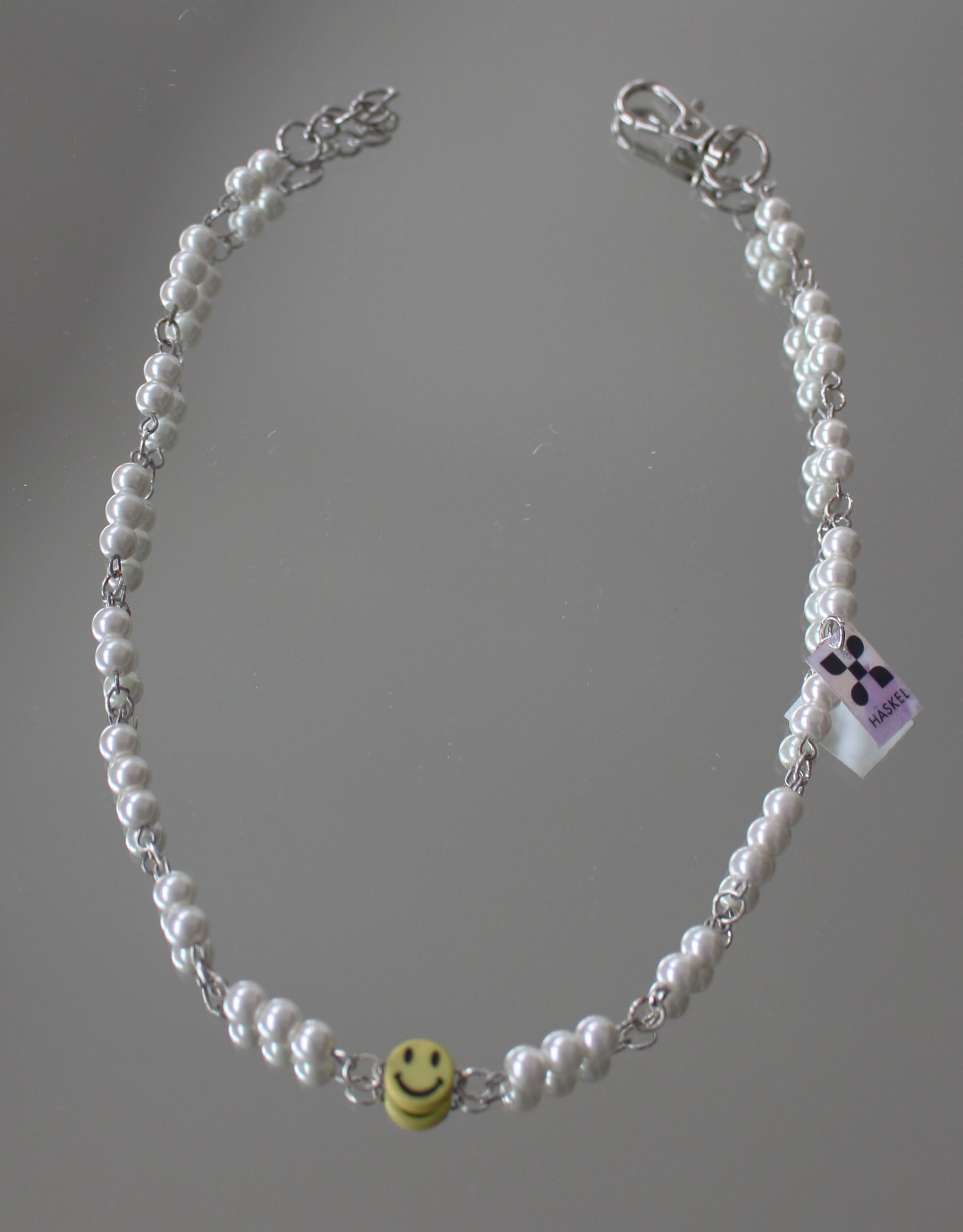 Materials: Glass pearls hand embeded chain with smiley-face pearl.